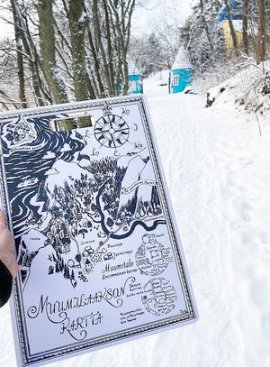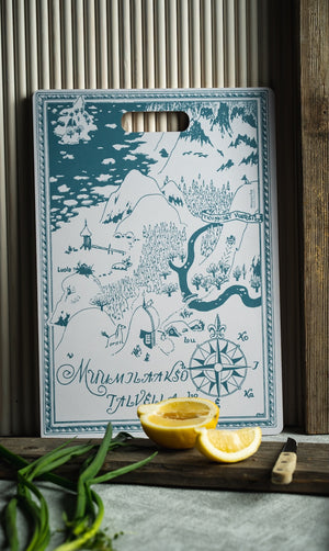 Explore the whimsical world of Moominvalley with the Moomin Chop & Serve Board - The Map. Featuring Tove Jansson’s original map of Moominvalley, this beautifully illustrated board is both functional and decorative—perfect for chopping ingredients or serving your favorite treats.